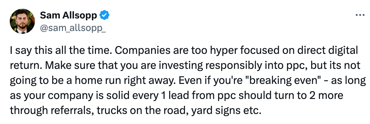 If they spend $1,000 on ads today and make $1,000, it is a win.