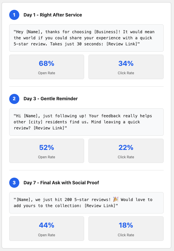 We tracked over 10,000 review requests to find the perfect formula. Here's what the data showed: